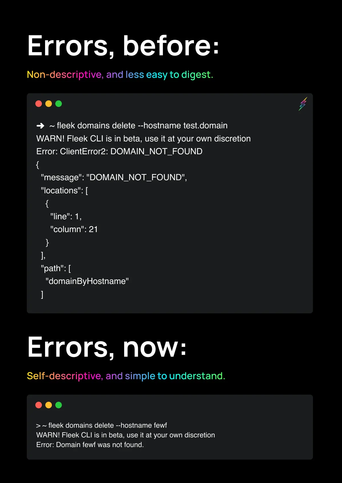 Now, our error-handling system is much more efficient and digestible, propagating error messaging across the CLI, SDK, and soon-to-come UI: