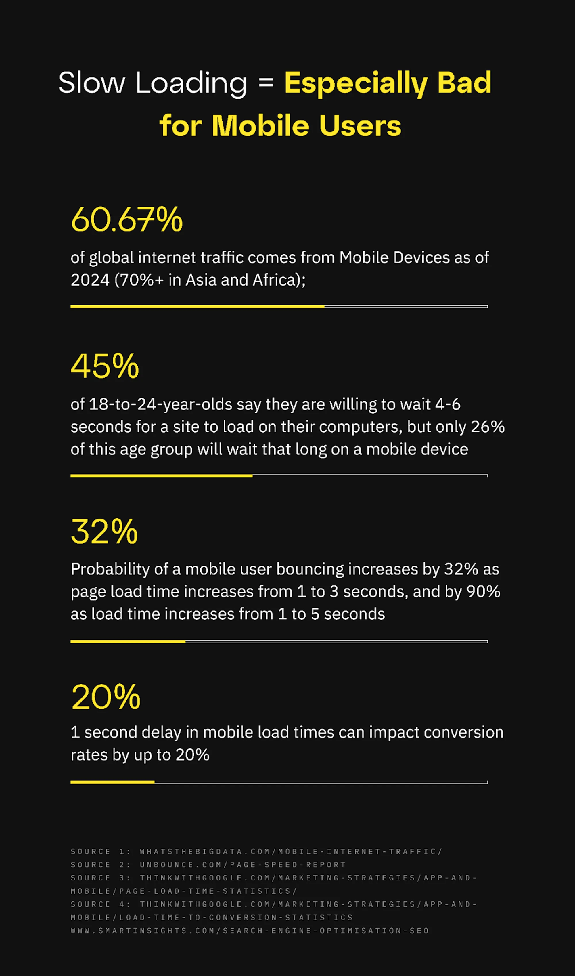 - 1 second delay in mobile load times can impact conversion rates by up to 20%