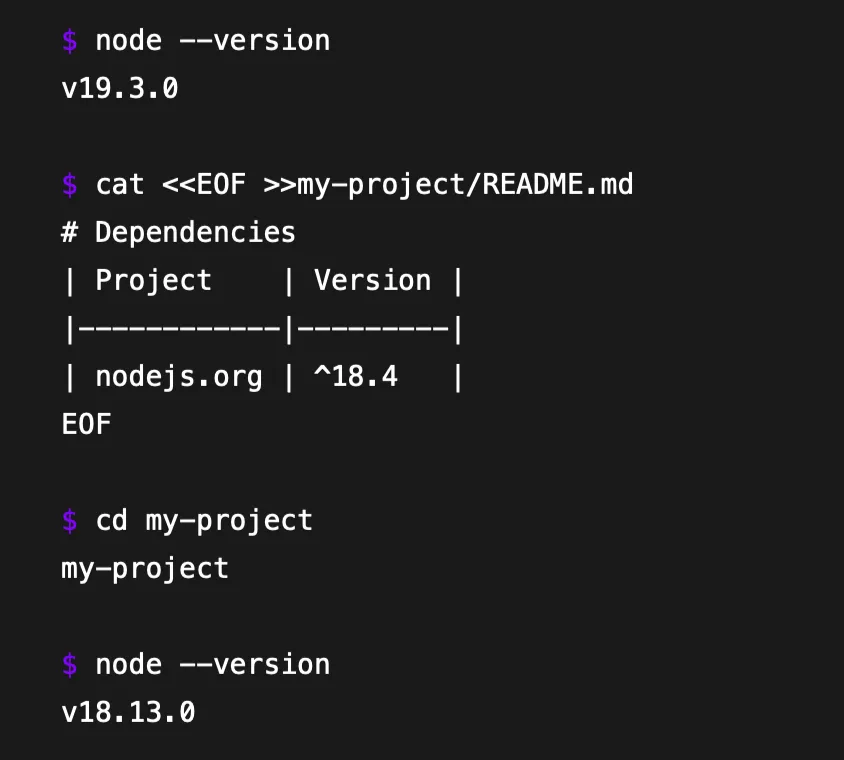Tea can automatically determine the tools a project directory needs based on the files it finds inside. Teaās āmagicā automatically fetches the specific versions those projects need and runs them.