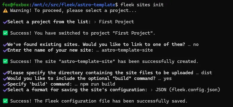 > Success! The Fleek configuration file has been successfully saved.