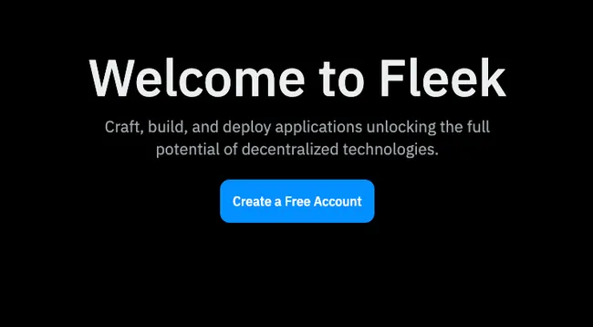 The first thing we’ll need to do is create a Fleek account: head over to fleek.xyz, and click on the Create a Free Account button.