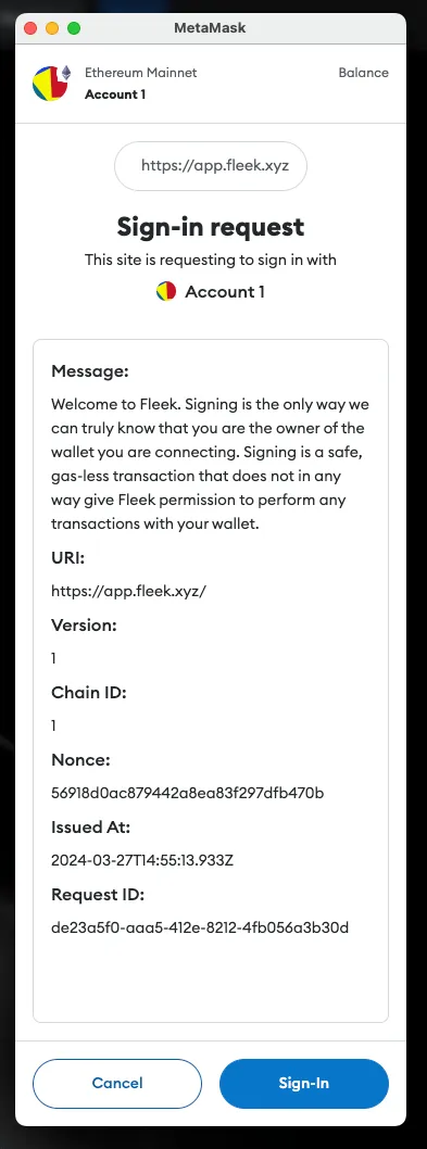 Click on the Metamask option from the wallet list and you’ll be presented with a sign-in request in your browser extension. This is to verify ownership of your account.