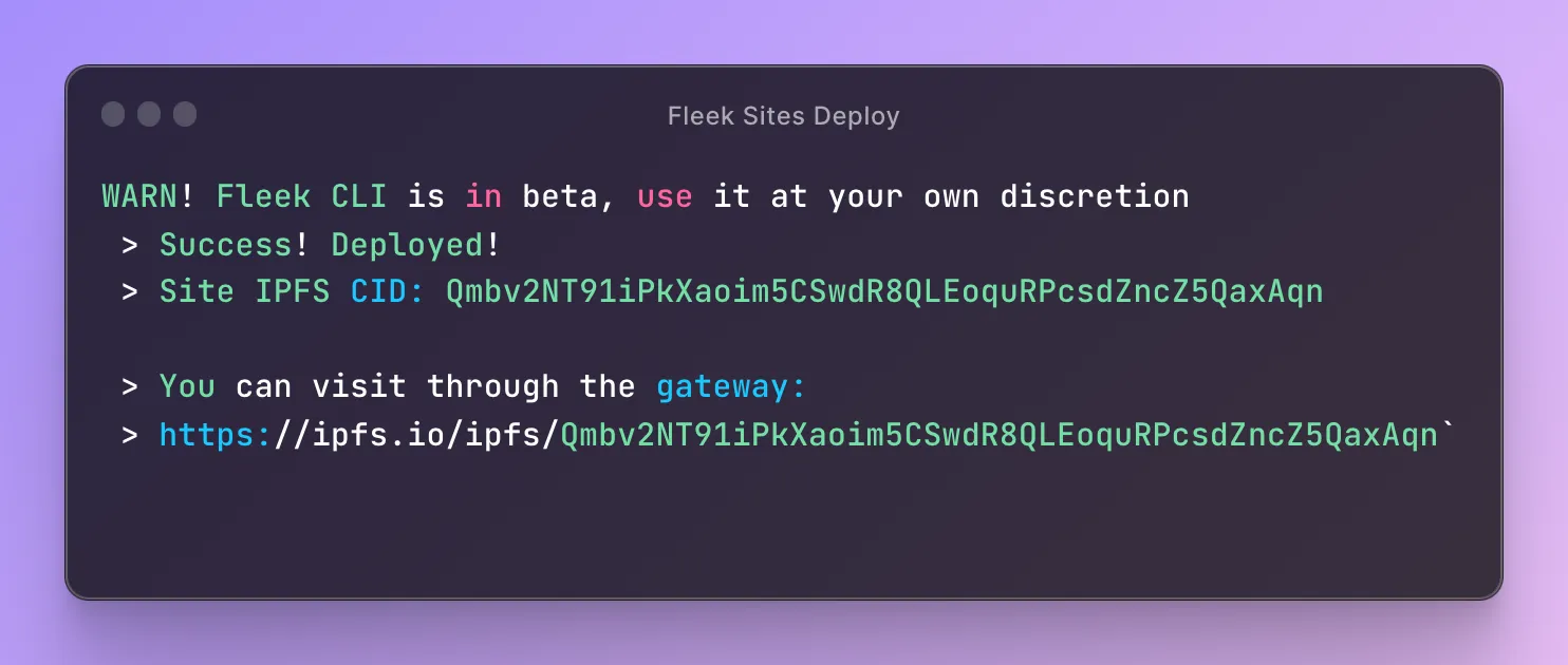 Hopefully, with these steps, deploying your first project using Fleek.xyz templates to IPFS with the Fleek CLI will be a breeze!