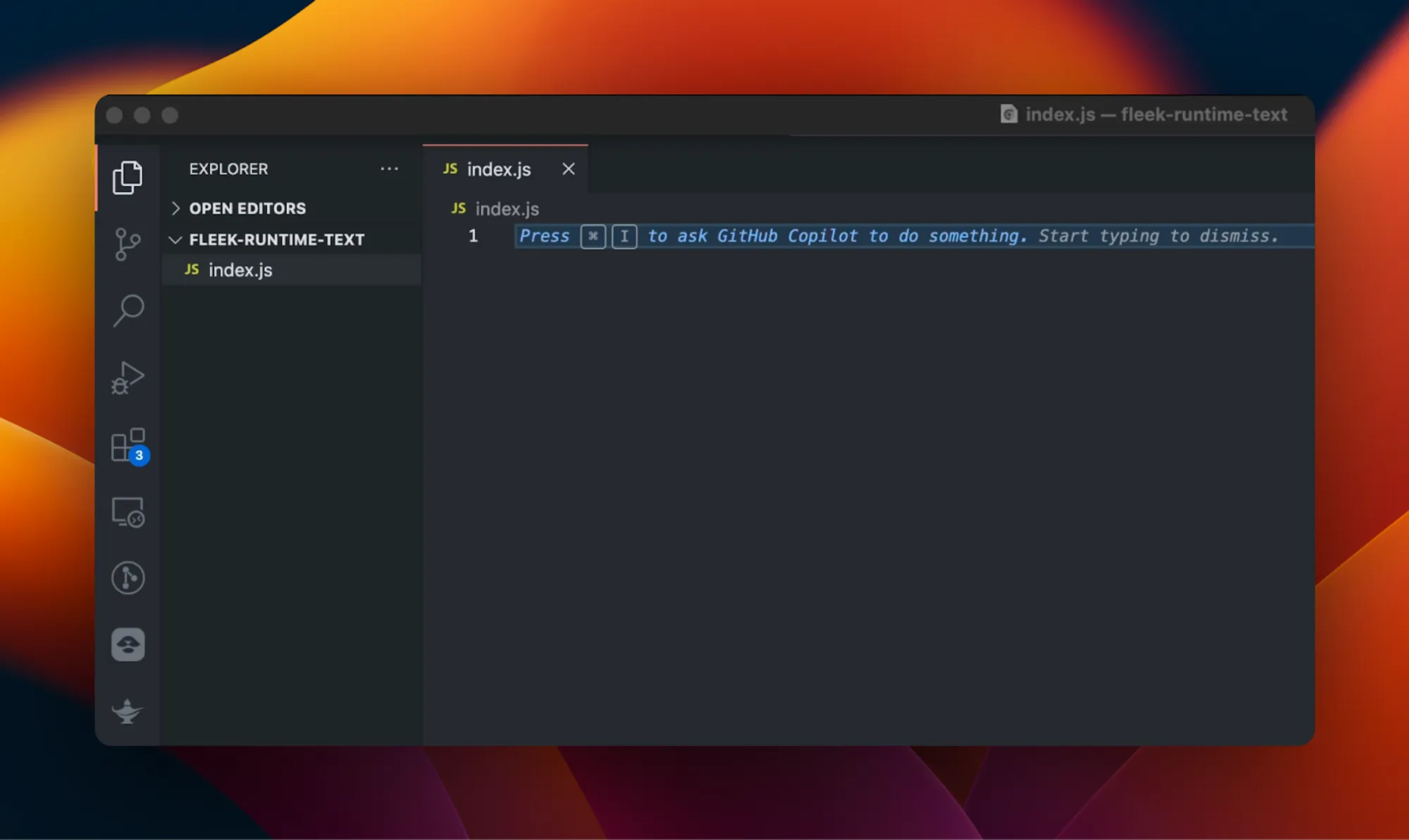 Setup here is straightforward. You can create a directory on your machine and an index.js file within it. You should have something similar to this: