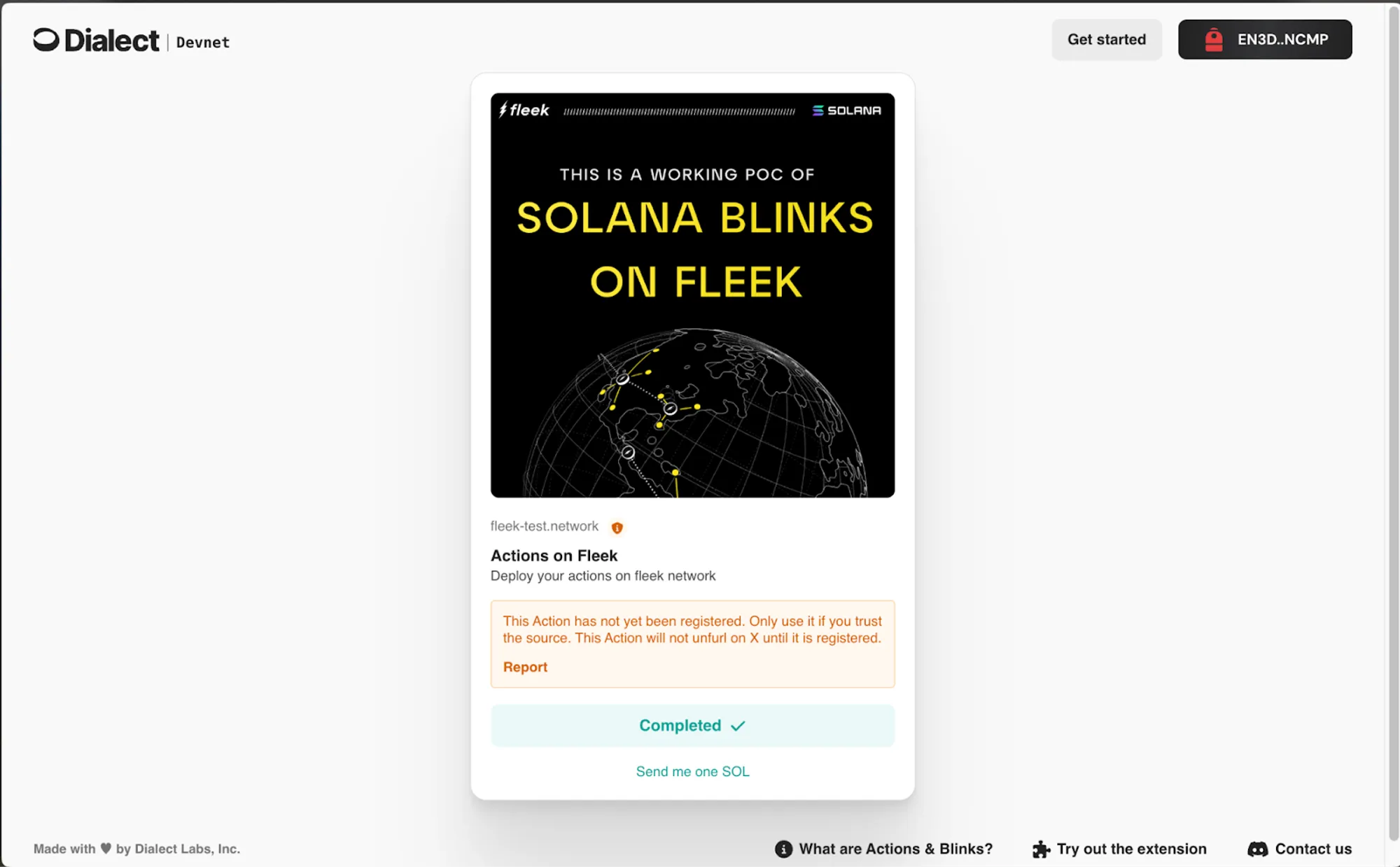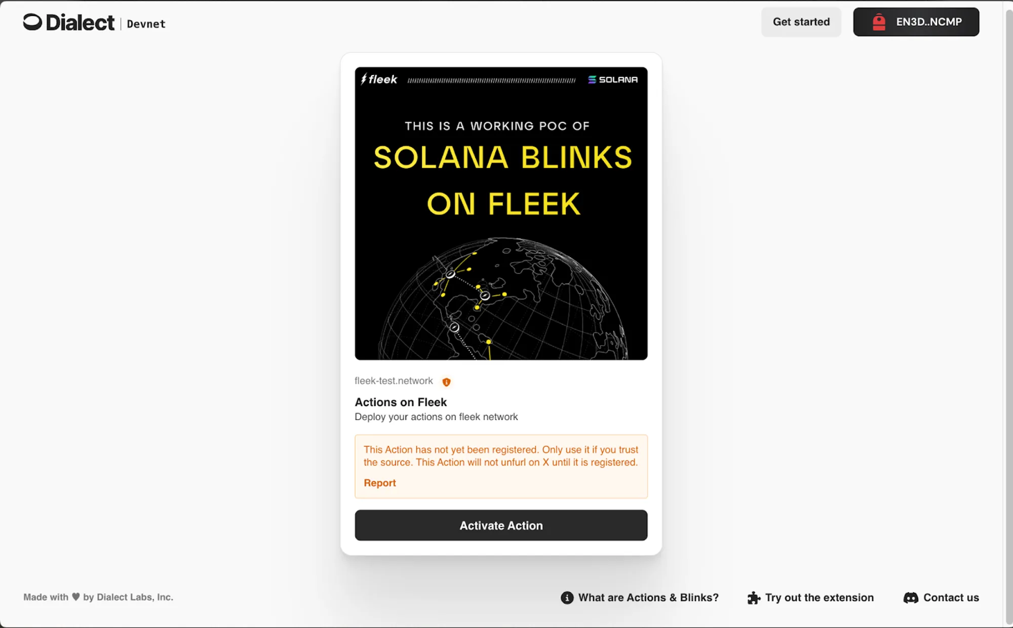 Finally, head over to dial.to to unfurl your Fleek Function into Solana Blinks.