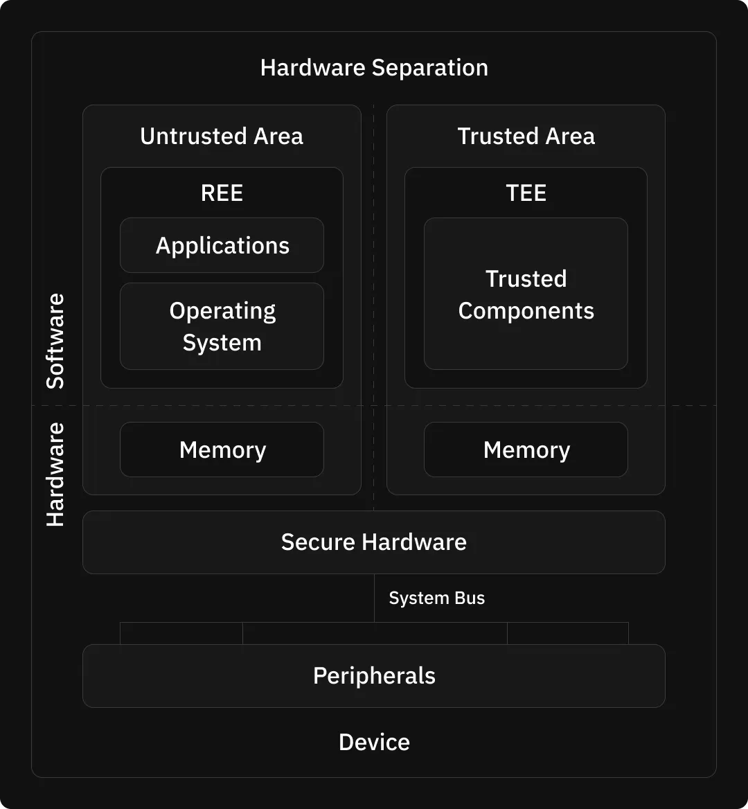 Trusted Execution Environments (TEEs) are secure regions within a processor, designed to execute sensitive code and handle critical data while ensuring protection from unauthorized access or modifications by external actors and in some cases, even the system itself. TEEs leverage hardware-based isolation, which enforces strict boundaries between the secure execution environment and the rest of the system, including the operating system (OS), hypervisor, and other applications. This isolation is achieved using advanced hardware techniques, such as address space separation, where the TEE operates in a separate memory region that is inaccessible to non-secure parts of the system. This hardware-enforced isolation ensures that even if the OS or hypervisor is compromised, the integrity and confidentiality of the operations within the TEE remain intact.