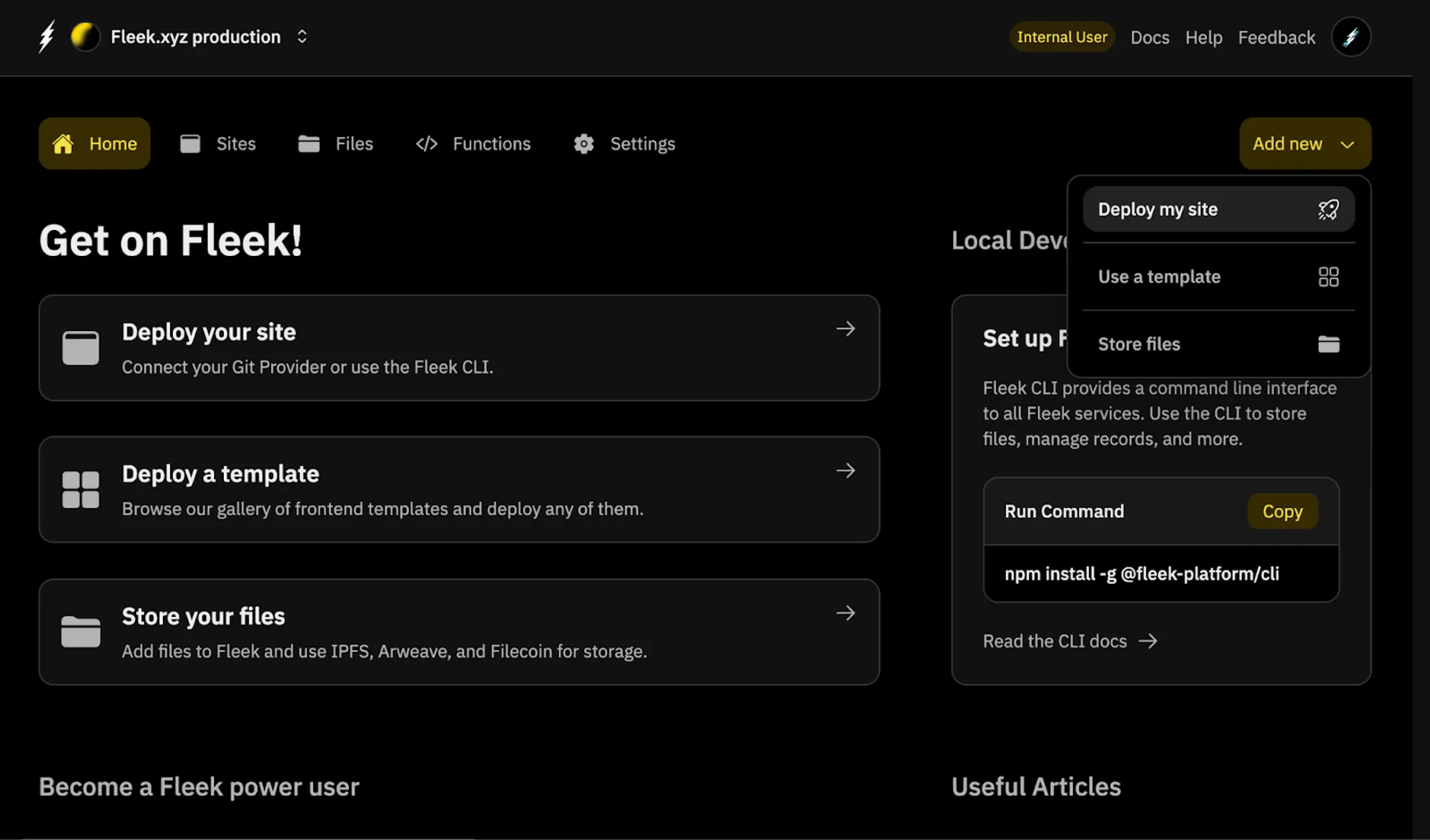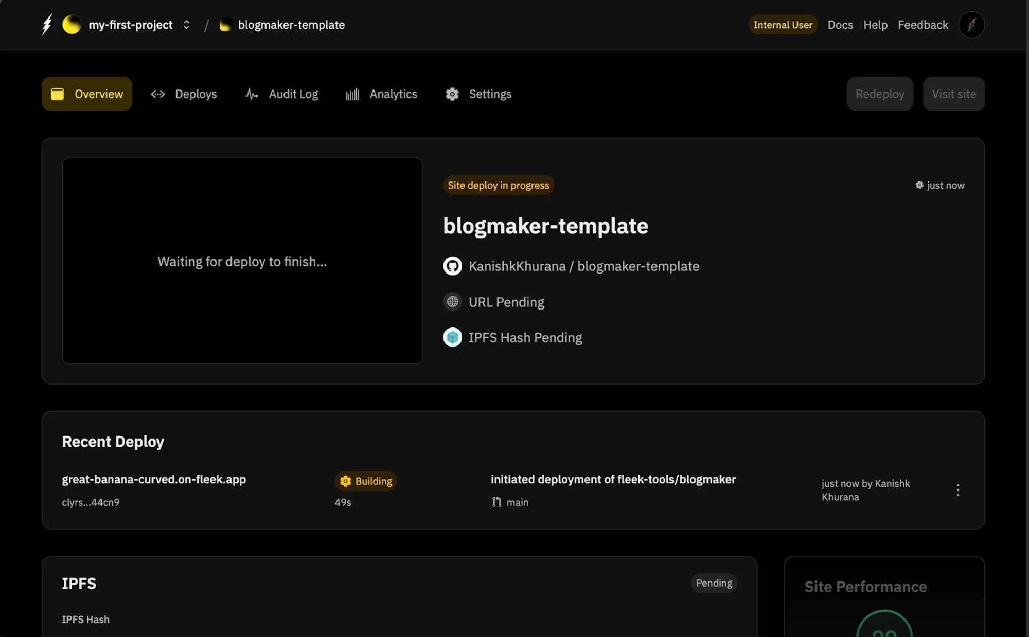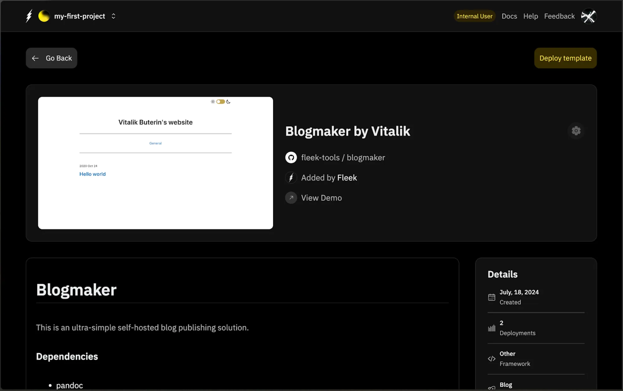 You can also deploy the “Blogmaker by Vitalik” template using Fleek’s template library and expedite your process of deploying a completely functional and lightning fast blog website in just a few clicks.