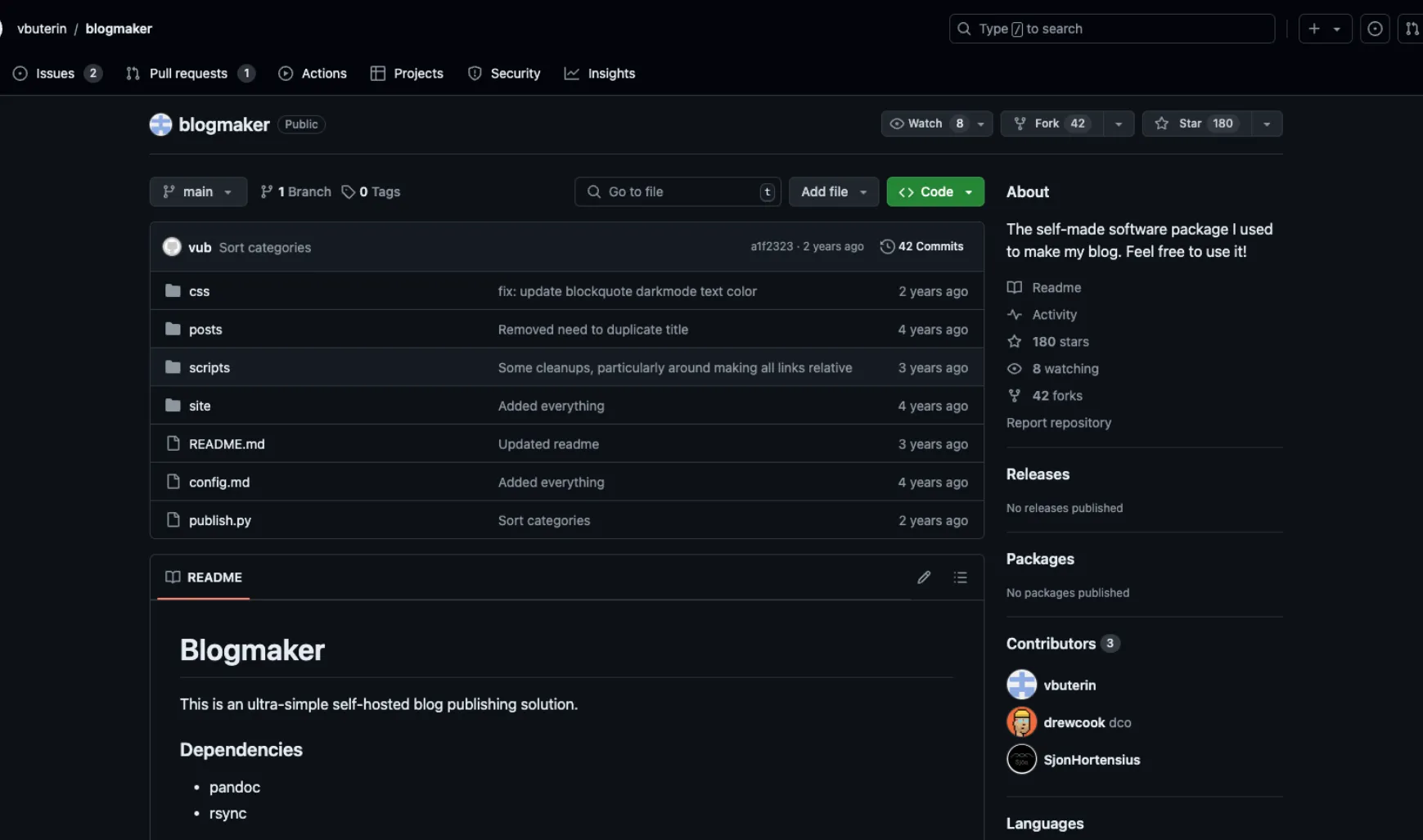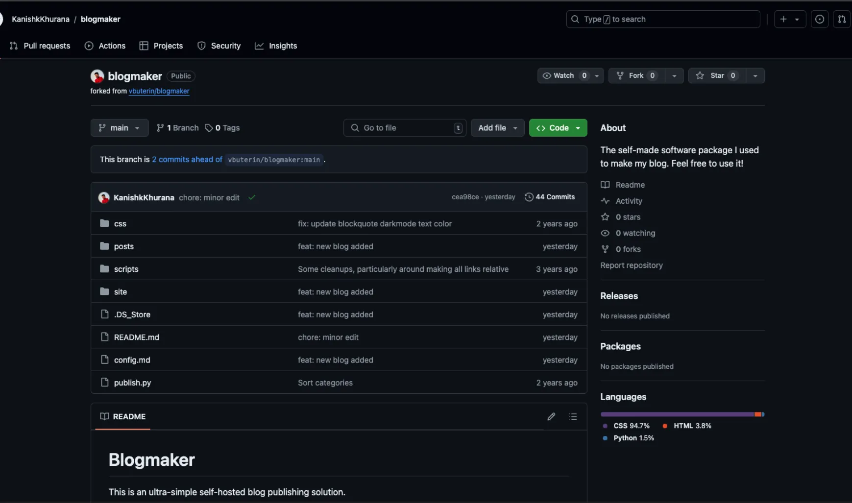 The blog website follows a minimal UI with focus on loading pages quickly and rendering markdown. The template for the blog is open source and can be found here.