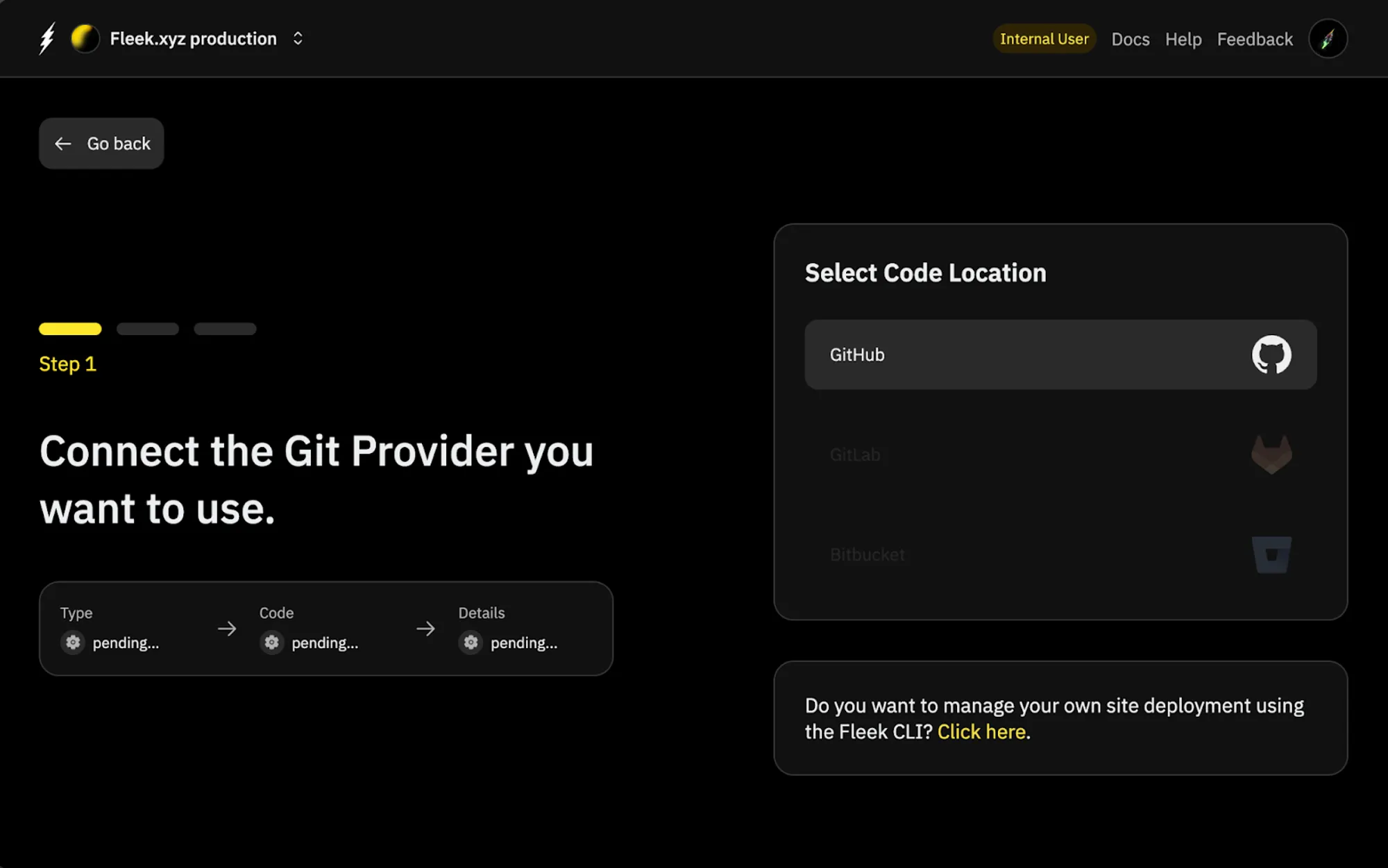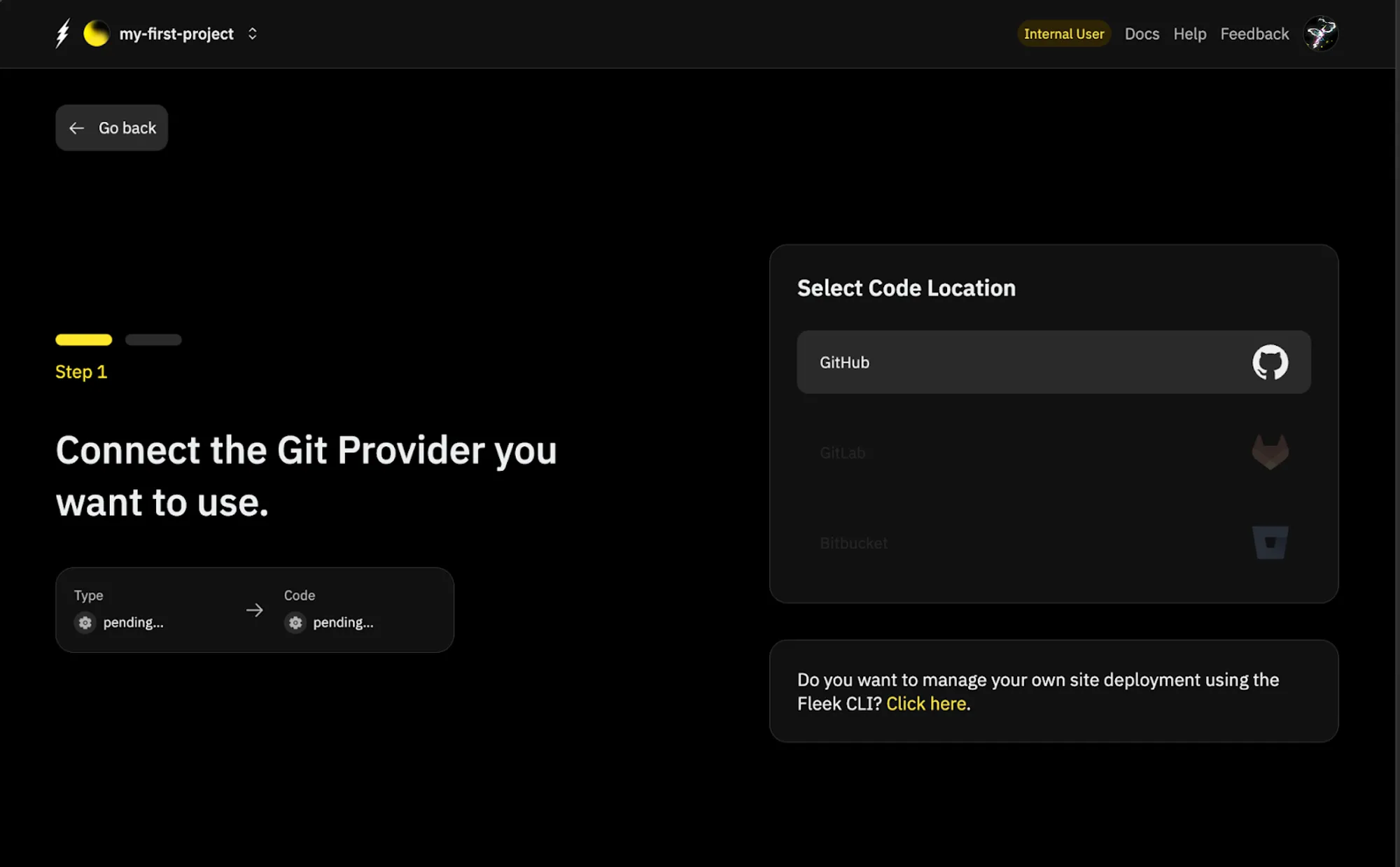 Select the location of your code. In our case it is Github. (Gitlab and Bitbucket will be supported soon) -