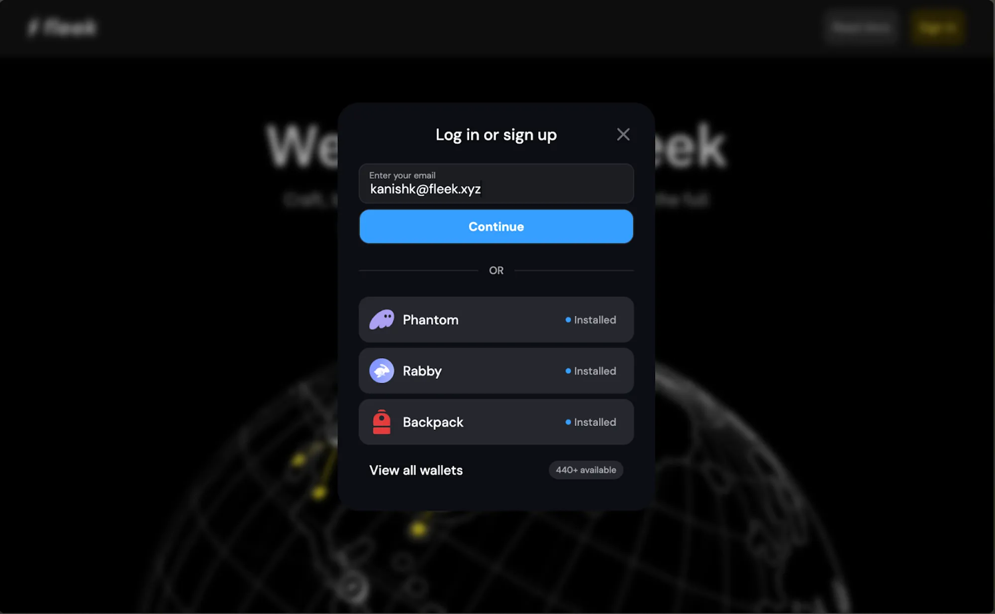 - Head over to fleek.xyz and log in. For the purpose of this tutorial we will be logging in using our email account -