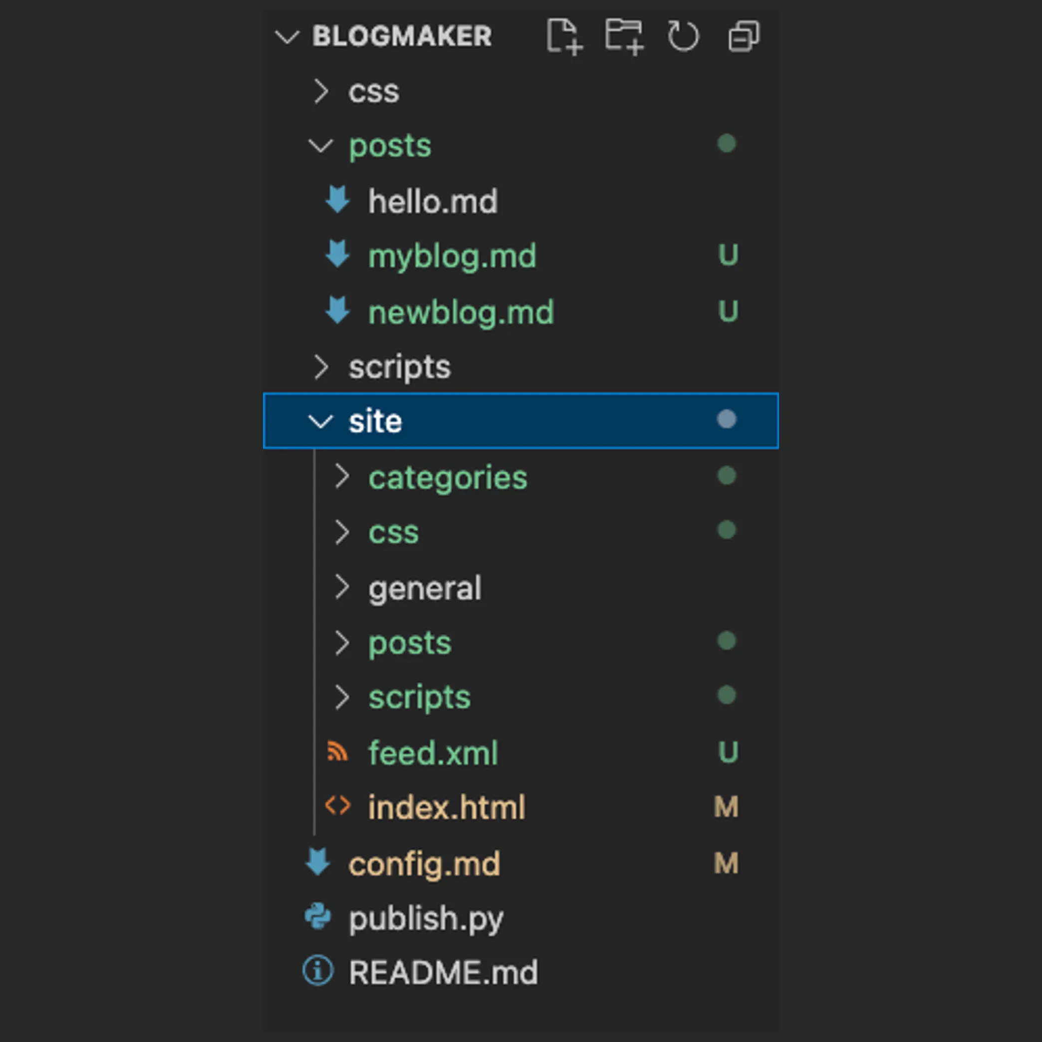 - Once you are done adding content to your new blog, run the following command in your terminal to compile all new markdown based blogs to HTML and add them to the main HTML file. This will edit the site folder and prepare it for hosting on Fleek -