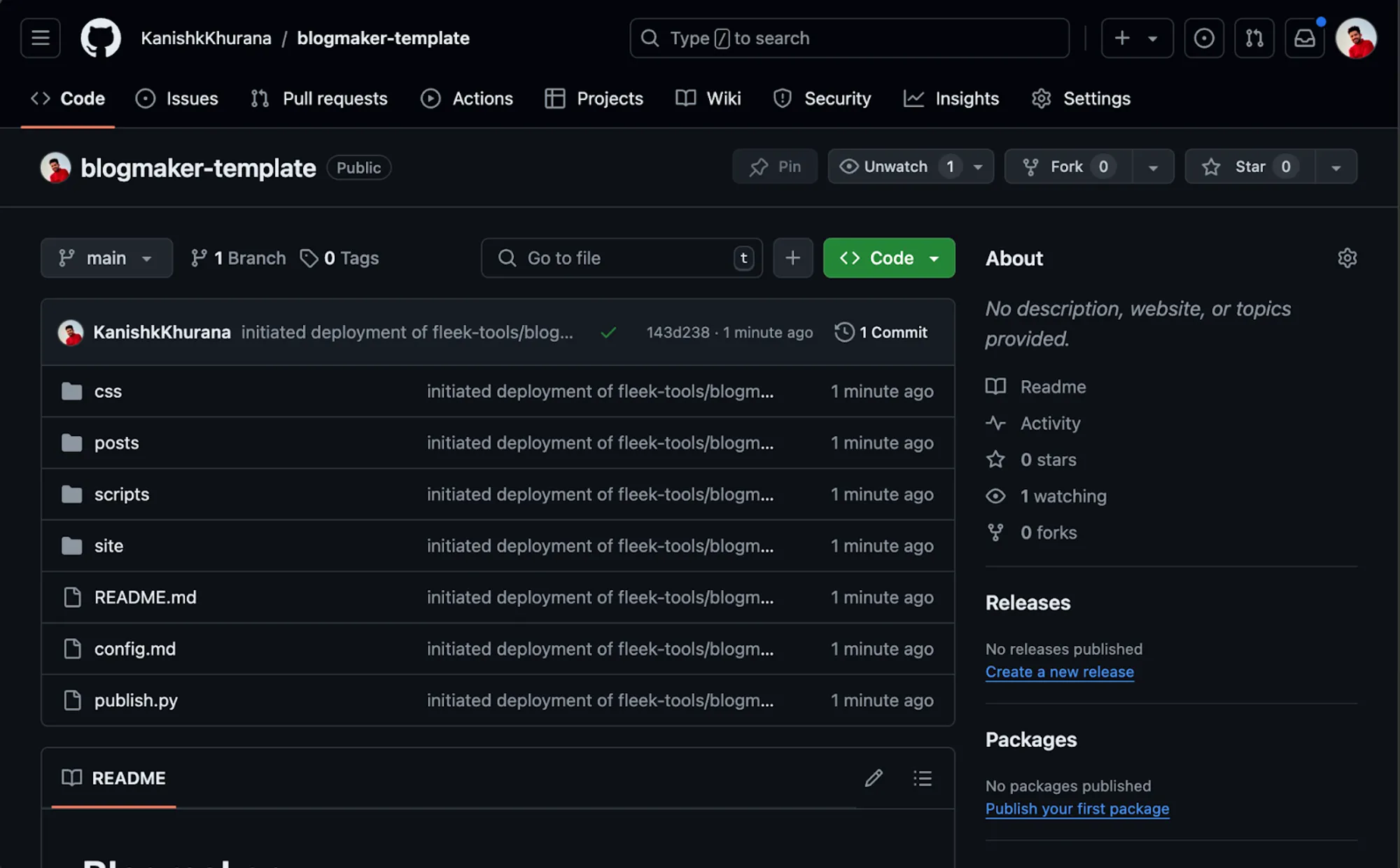 - Finally, as we discussed before, a GitHub repository titled “blogmaker-template” will be available in the list of repositories for your GitHub account -